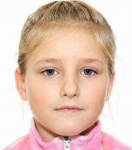 Прикмети дитини: виглядає на 13-14 років., худорлява, сірі очі, світло-русяве волосся.
