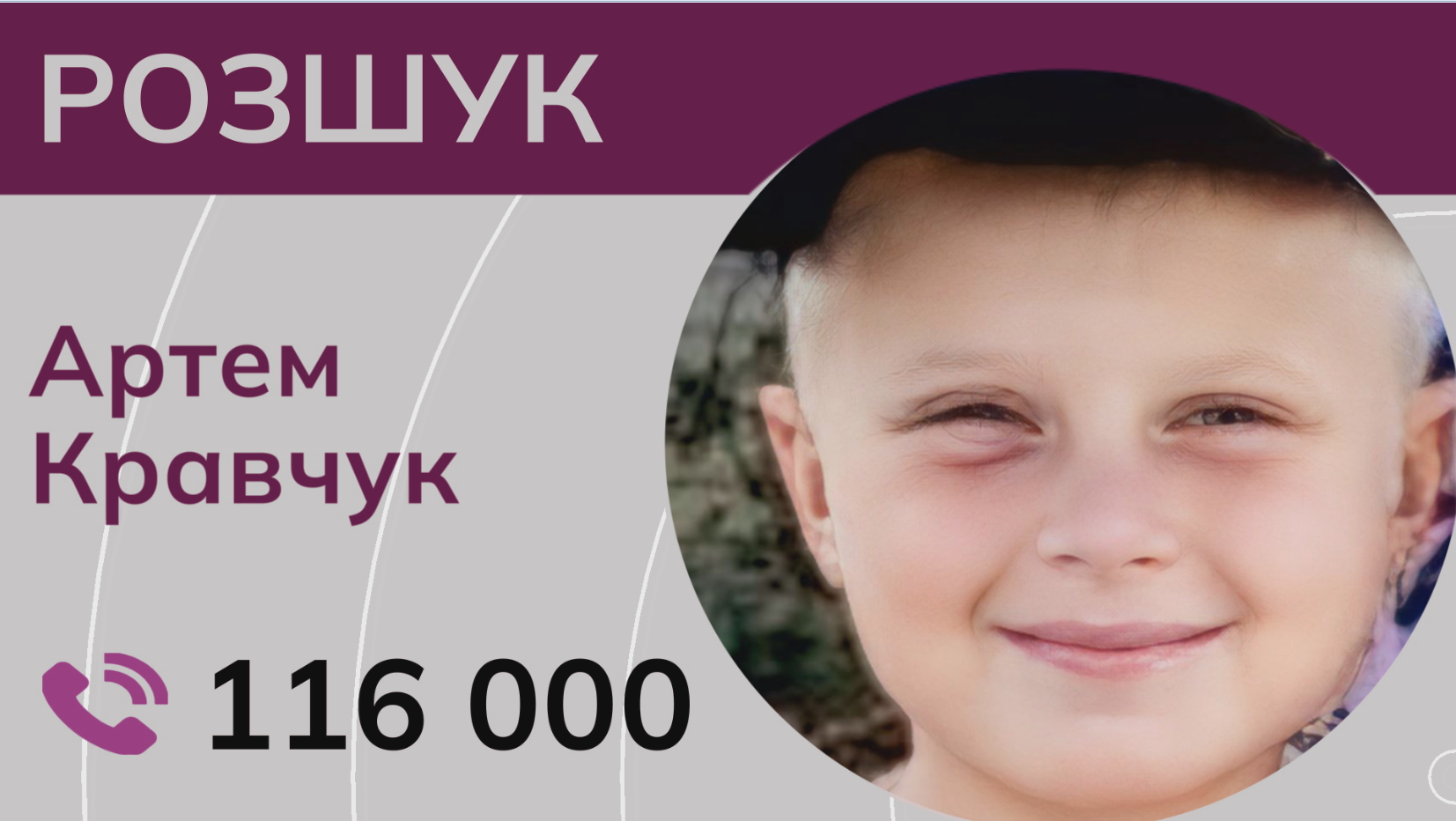 Якщо у вас є будь яка інформація про Артемчика, повідомте на гарячу лінію “Служби розшуку дітей Магнолія” за номером 116 000. Або пишіть у наш чат-бот у Telegram @missingchildren_bot